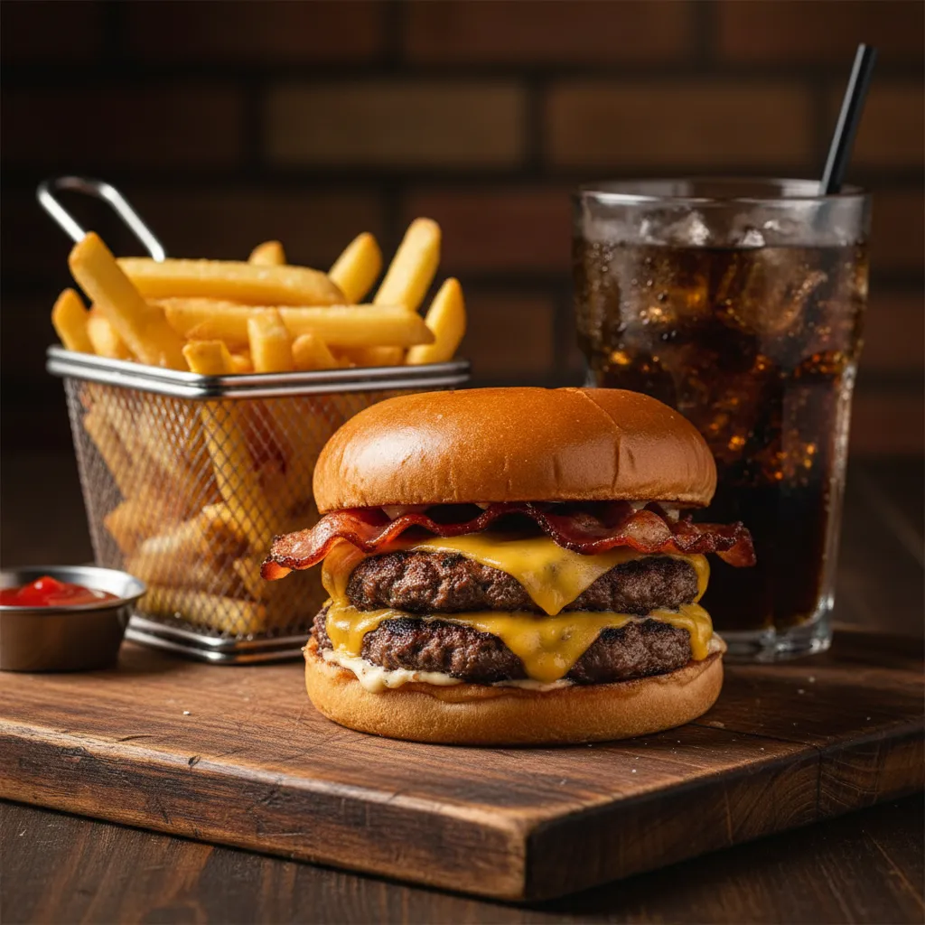 2 Smash Clássicos + 2 Smash Duplos + Fritas Grande + 4 Refris · Serve até 4 pessoas